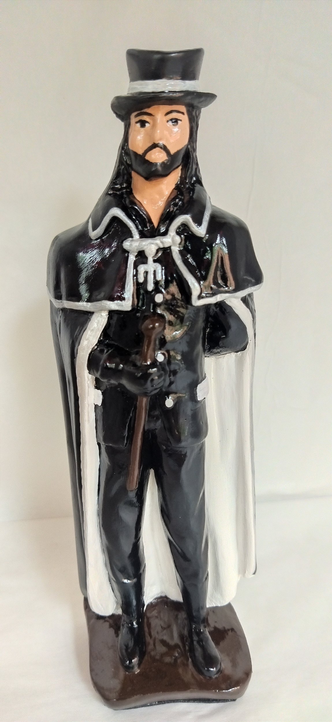 Imagem de Exu Tranca Ruas / Capa Preta 20cm, Umbanda/Candomblé, produto artesanal em gesso, pintado e decorado a mão, com fino acabamento, e materiais de alta qualidade.